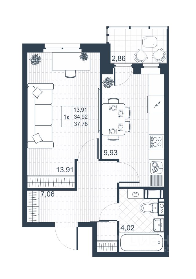 Общая площадь34,7 м²