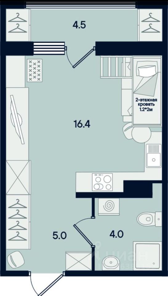Предлагаем к продаже Студию 25,1 м с с высоким потолком 3.3 м