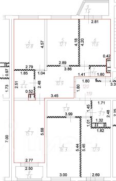 Все комнаты раздельные площадью 15,7+12,1 +12,8 кв. метров, кухня площадью 11,6 кв. метра, коридор 10,9 кв. метра( есть место для большого шкафа- купе и прихожей), два санузла площадью 4,4 и 1,8 кв. метра. Лоджия 1,5 кв. метра, балкон 1,4 кв. метра.