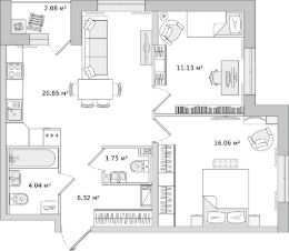 Продаётся двухкомнатная квартира в жилом комплексе Город Первых, Корпус 4.7
