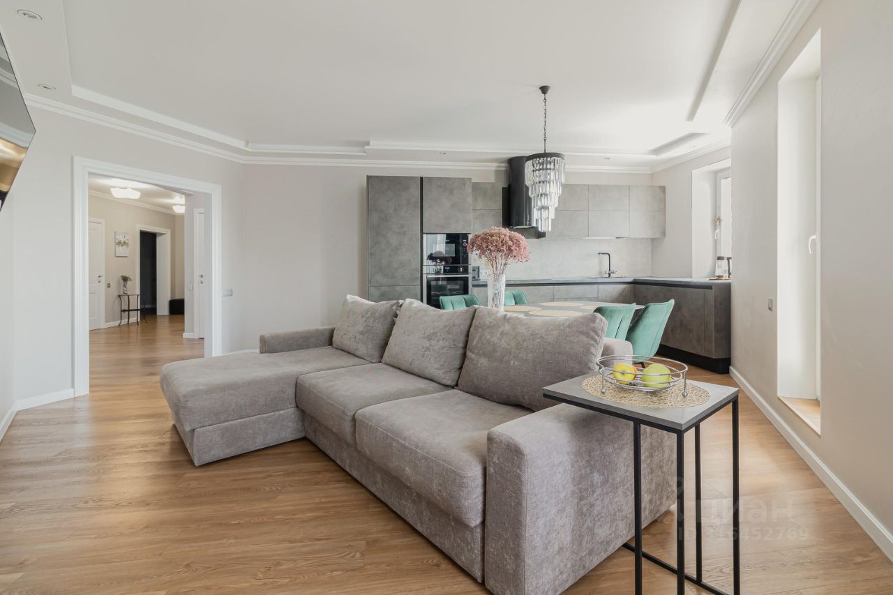 Квартира двухсторонняя, общая площадь 109,5 до перепланировке 114 кв.м. В квартире произведена узаконенная перепланировка с дизайн проектом, произведен (свежий) полный РЕМОНТ с использованием качественных материалов, установлено 3 сплит системы. Комнаты 12+17+11,5 кв.м. раздельные, просторная кухня 30 кв. м. с качественной встроенной кухней и бытовой техникой с выходом на лоджию, просторная гардеробная, еще одно помещение под кладовую или гардеробную, СУС, есть второй СУЗ с хоз. блоком.