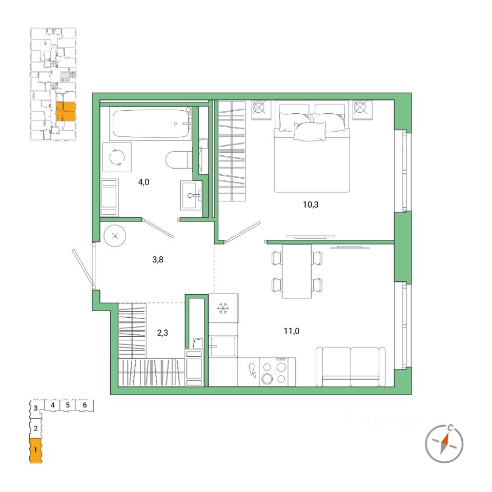 10,3 м²