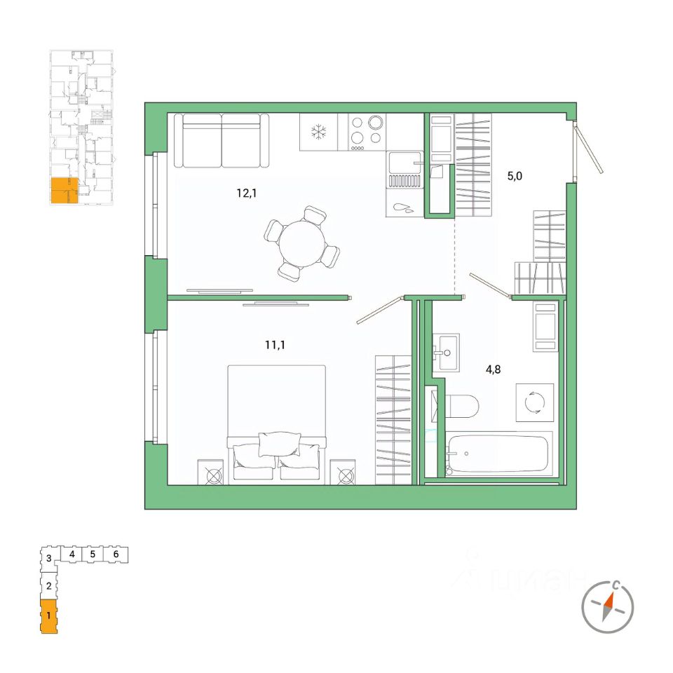 12,1 м²