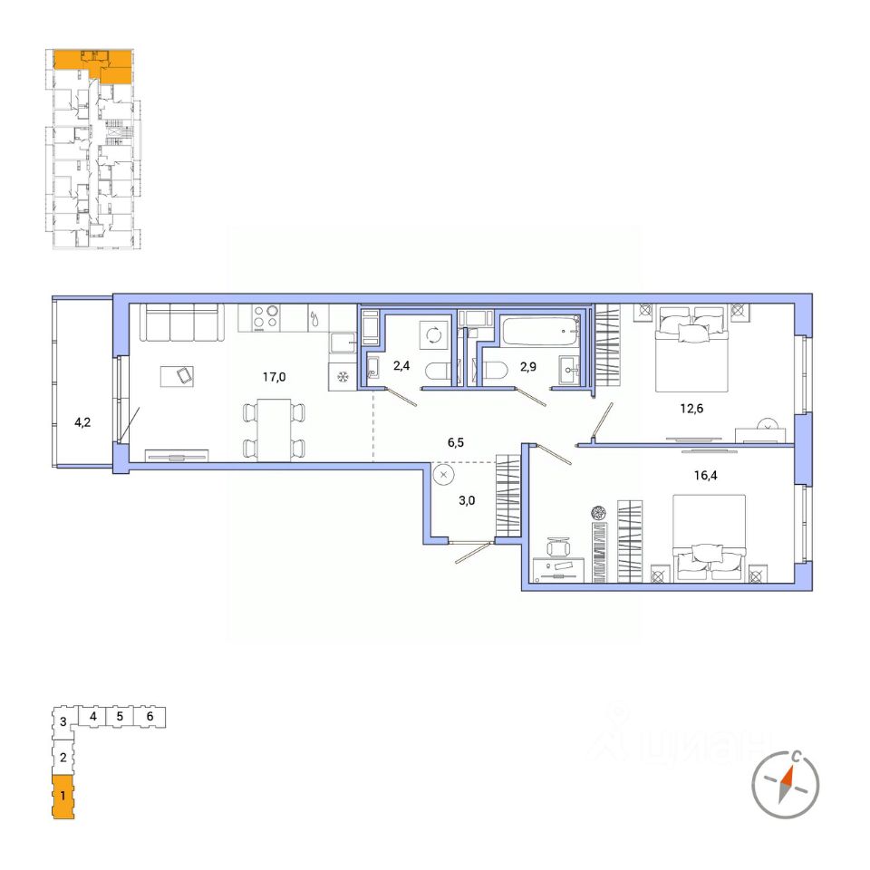 17 м²