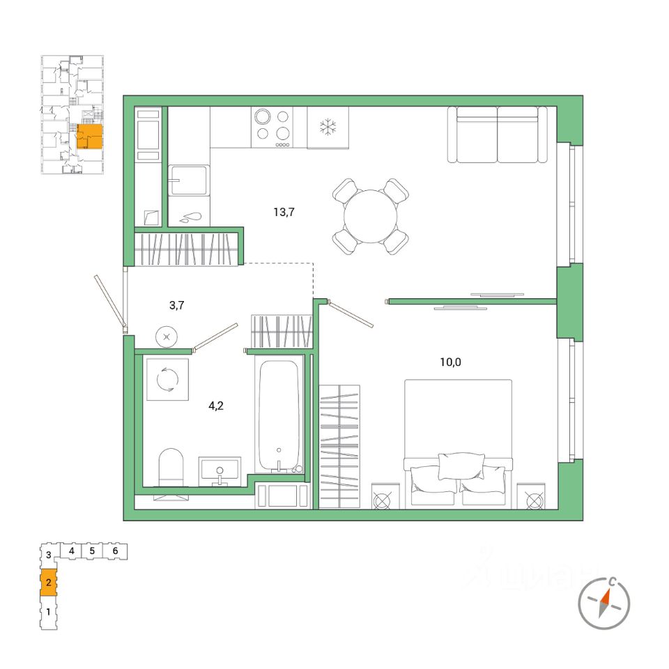 13,7 м²