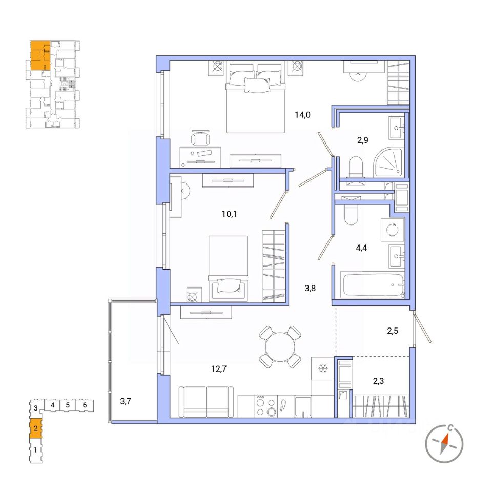 12,7 м²