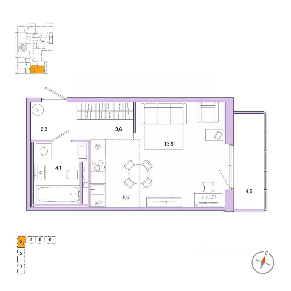 13,8 м²