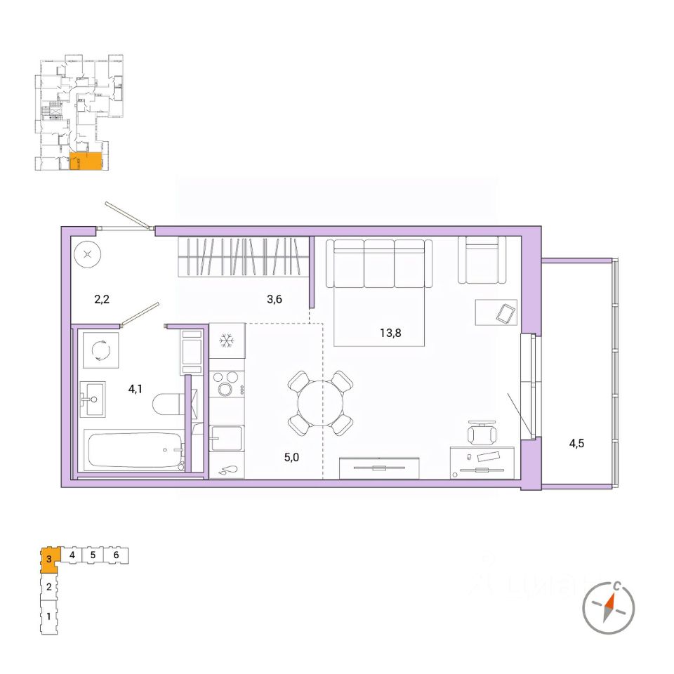 13,8 м²
