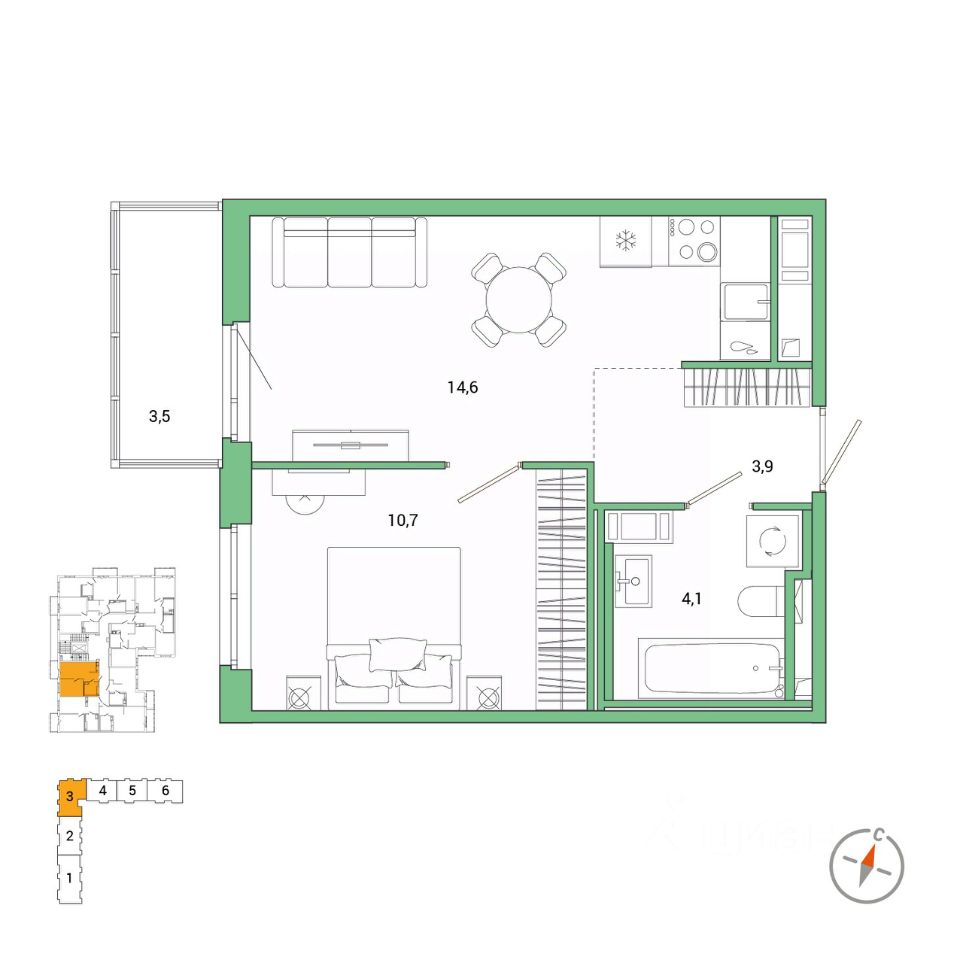 14,6 м²