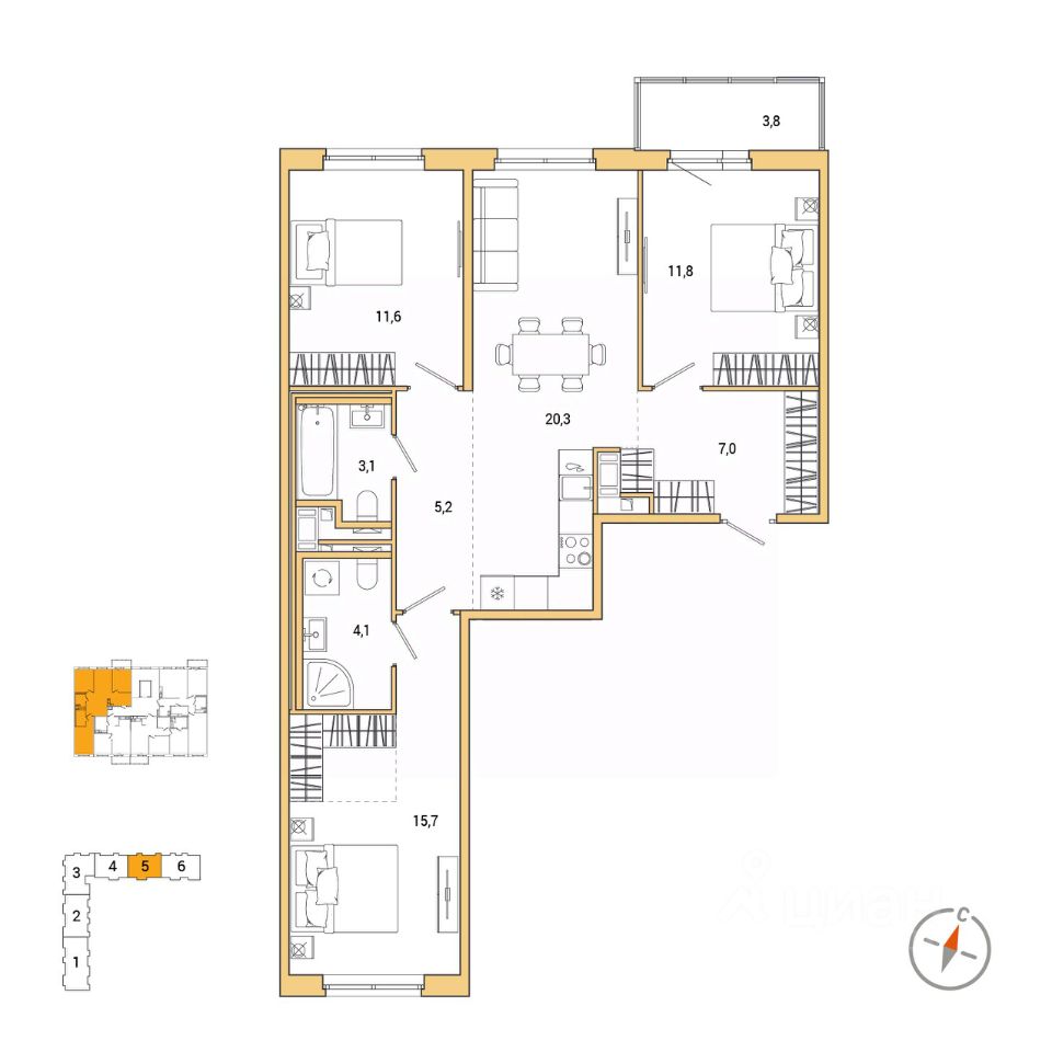 20,4 м²