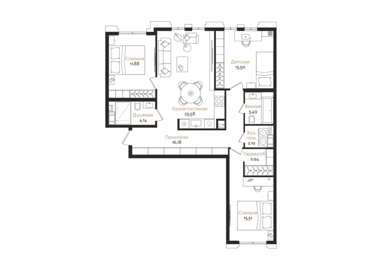 Квартира передается без отделки, что позволяет воплотить свои дизайнерские идеи и создать уникальный интерьер.  Во всех квартирах потолки 3 м и панорамные окна высотой 2,8 м. В каждой секции и на каждом этаже спроектированы помещения для установки кондиционеров. Предусмотрены грузовые лифты, на первых этажах организованы места для хранения детских колясок. Отделка входных групп и общих зон выполнена по авторскому дизайну.