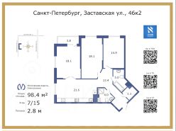 мастер-спальня с гардеробом - 18,1 м2, кухня - 21,6 м2; гостиная 18,1 м2, детская комната 14,9 м2; прихожая 13,4 м2; ванная комната 5,0; туалетная комната с душевой кабиной 4,0 м2; гардероб в прихожей для верхней одежды 3,3 м2; балкон 3,8 м2.