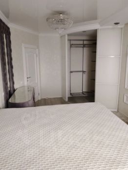 Мастер-спальня с гардеробной. Встроенная дугообразная гардеробная, встроенная подсветка, телевизор, кондиционер.