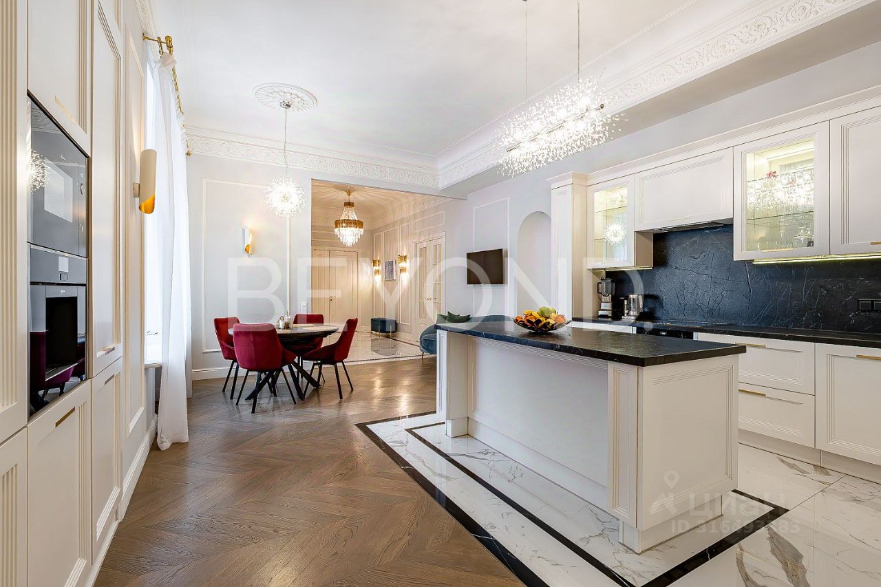 Предлагается к покупке элегантная трехсторонняя квартира с дизайнерским ремонтом премиум-класса расположена в знаковом здании 1913 года постройки, созданном архитекторами Яковлевом и Зазерским. Дом отличается шедевральной архитектурой в стиле неоклассицизма: порфировидный гранит цоколя, кариатиды на фасадах, уютный мощённый двор-курдонёр с аутентичной оградой и фонарями.