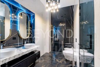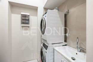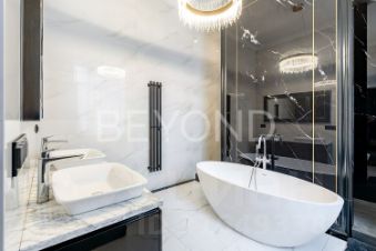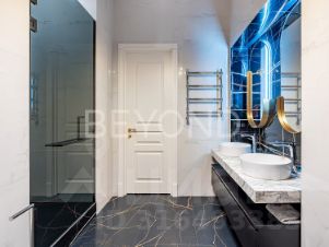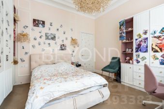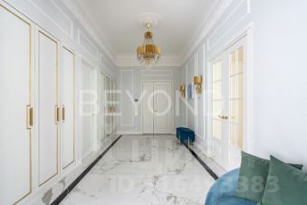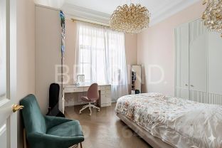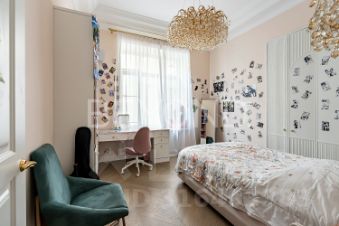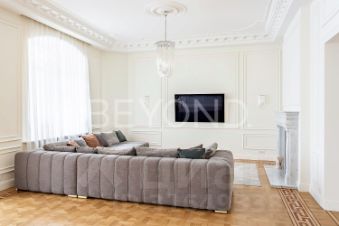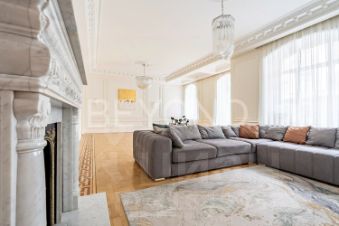 Квартира предлагает продуманную планировку: светлая гостиная с камином и балконом, изолированная мастер-спальня с видом во двор, две детские комнаты, гостевая комната и просторная гостиная с панорамными окнами в тихий сквер. В отделке использованы элитные материалы: наборный дубовый паркет, мраморные подоконники, массивные двери из сосны, керамогранит. Вся техника и инженерные решения подобраны для комфортной жизни: встроенная техника NEFF, сантехника VilleroyBoch и Jacob Delafon, радиаторы Irsap, приточно-вытяжная вентиляция, кондиционер в кухне-столовой, деревянные стеклопакеты из лиственницы.