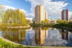 Дом находится на берегу реки Сосновки и благодаря расположению квартиры открывается неповторимый вид на прогулочную зону.
