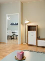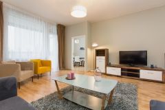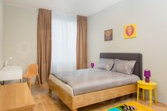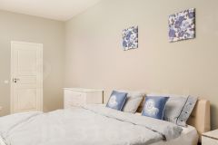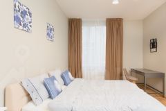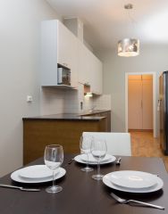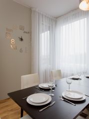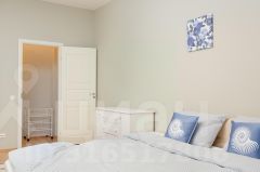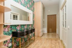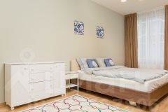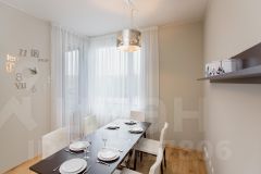 В квартире сделан современный ремонт, есть вся необходимая мебель и техника. Три просторных комнаты (28,7 кв.м., 18,6 кв.м. и 21,0 кв.м.), кухня с обеденной зоной (24 кв.м.), два санузла и лоджия 7,2 кв. м. Потолки - 3 метра. Большая часть окон выходят на Малую Невку. Квартира расположена на комфортном 2-м этаже. Удобная планировка включает один совмещенный и один отдельный санузел, что особенно удобно для семей с детьми или для гостей. Из окон квартиры открывается вид как на двор, так и на улицу, а на балконе можно наслаждаться свежим воздухом в видом на р. Малую Невку и зелень.