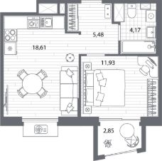 Продаётся 1-комнатная квартира в строящемся доме (Дом 2), срок сдачи: I-кв. 2026, общей площадью 41.05 кв.м., на 2 этаже. Жилой квартал Respect - современная респектабельность.