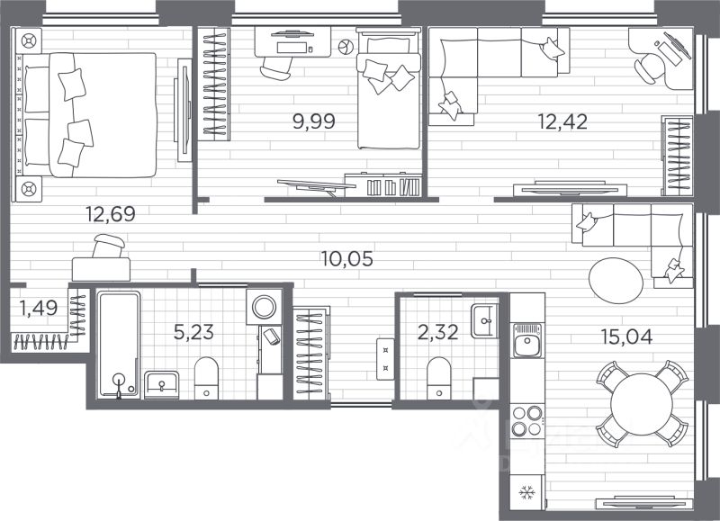 Продаётся 3-комнатная квартира в строящемся доме (Дом 7), срок сдачи: II-кв. 2026, общей площадью 69.23 кв.м., на 1 этаже. Уютный пятиэтажный квартал PLUS Пулковский расположен в престижном Московском районе на пересечении Пулковского и Волхонского шоссе в новом формирующемся микрорайоне.