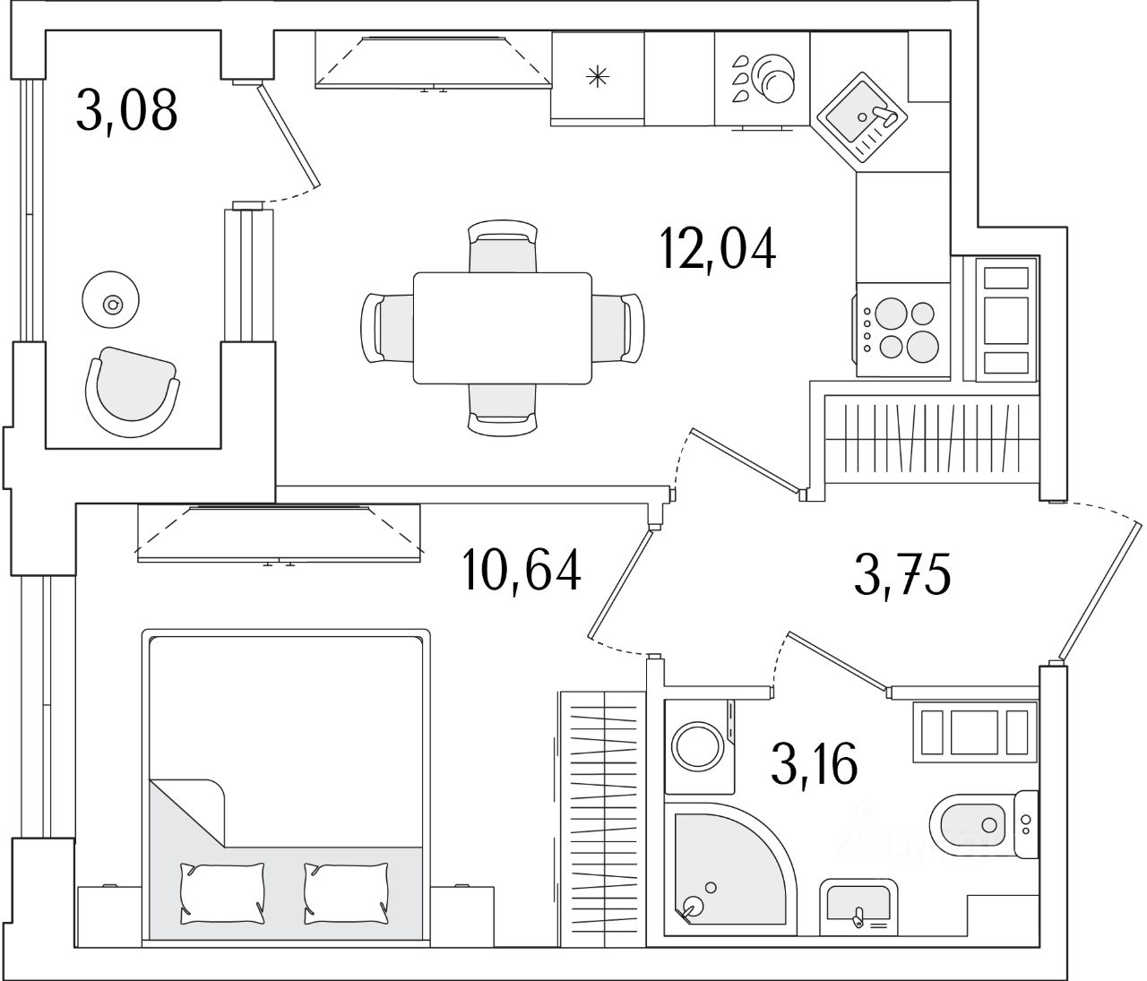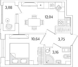 Квартира находится в 13 этажном доме, в Гранат - Корпус К1 на 2 этаже. Общая площадь квартиры 31,13 кв.м.