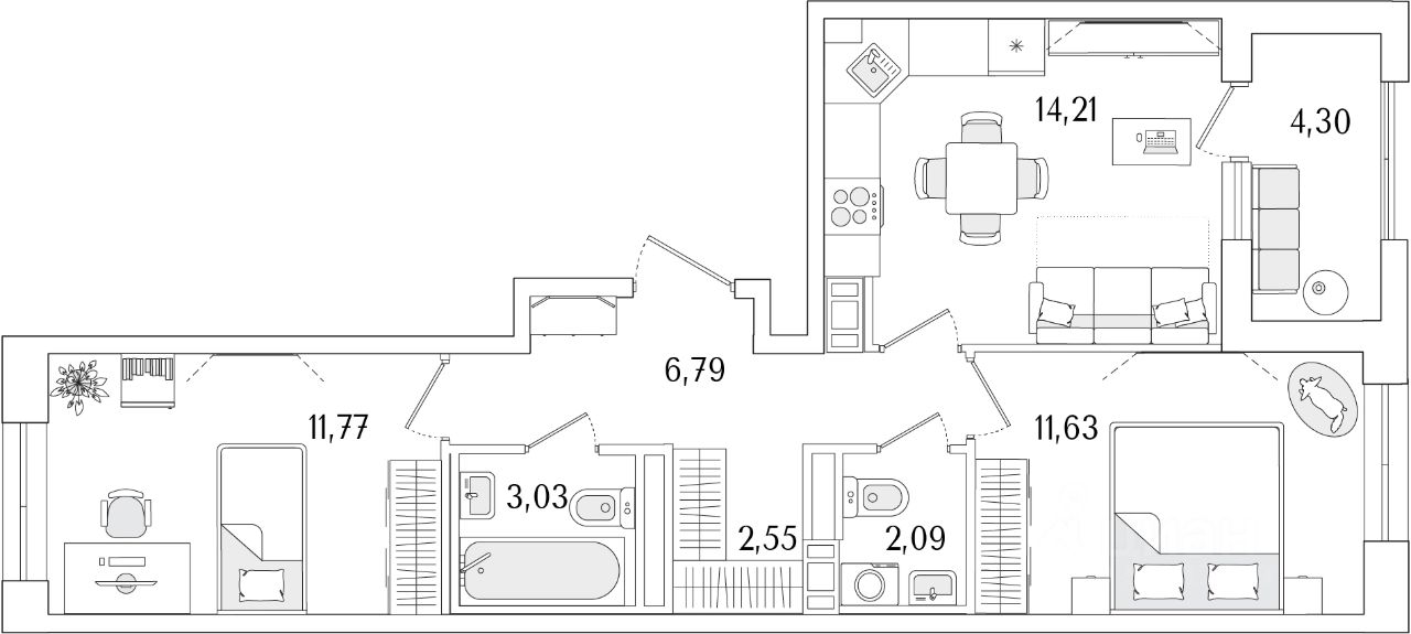 Кухни-гостиные с угловым остеклением. Просторные кухни-гостиные площадью более 20 м². Студии с двумя окнами. Ванные с окном Clerestory. Кухни-гостиные с выделенной нишей под кухню. Спальни с выделенной многофункциональной зоной, в которой можно организовать свой идеальный уголок. Квартиры с просторными лоджиями правильной квадратной формы.