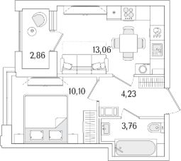 Квартира находится в 13 этажном доме, в Гранат - Корпус К1 на 5 этаже. Общая площадь квартиры 32,58 кв.м.