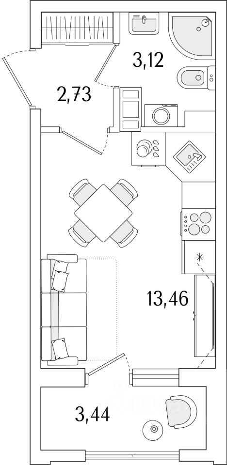 Квартира находится в 13 этажном доме, в Гранат - Корпус К1 на 8 этаже. Общая площадь квартиры 21,03 кв.м.