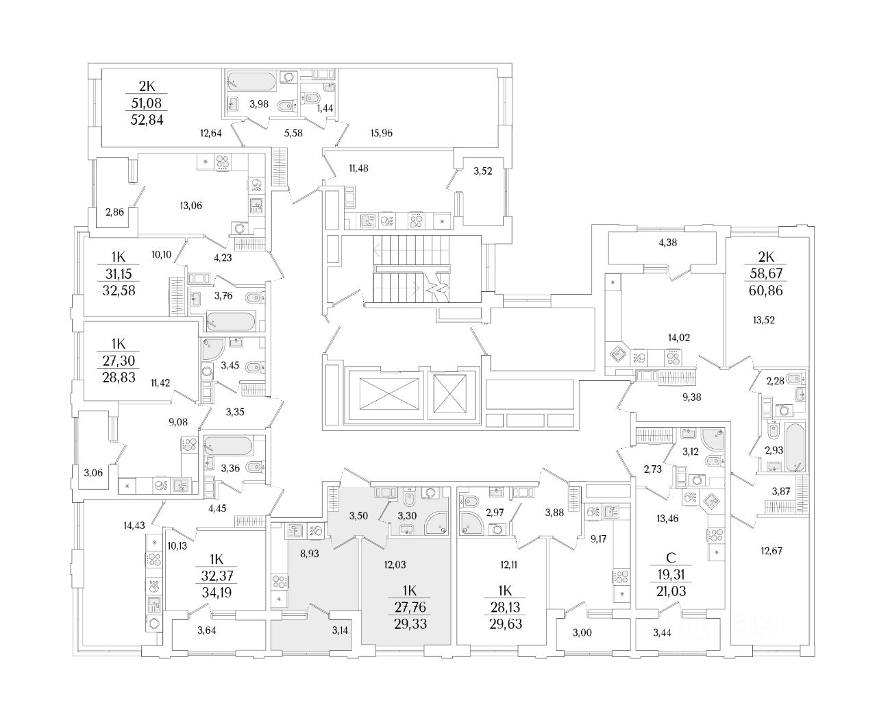 Кухни-гостиные с угловым остеклением. Просторные кухни-гостиные площадью более 20 м². Студии с двумя окнами. Ванные с окном Clerestory. Кухни-гостиные с выделенной нишей под кухню. Спальни с выделенной многофункциональной зоной, в которой можно организовать свой идеальный уголок. Квартиры с просторными лоджиями правильной квадратной формы.