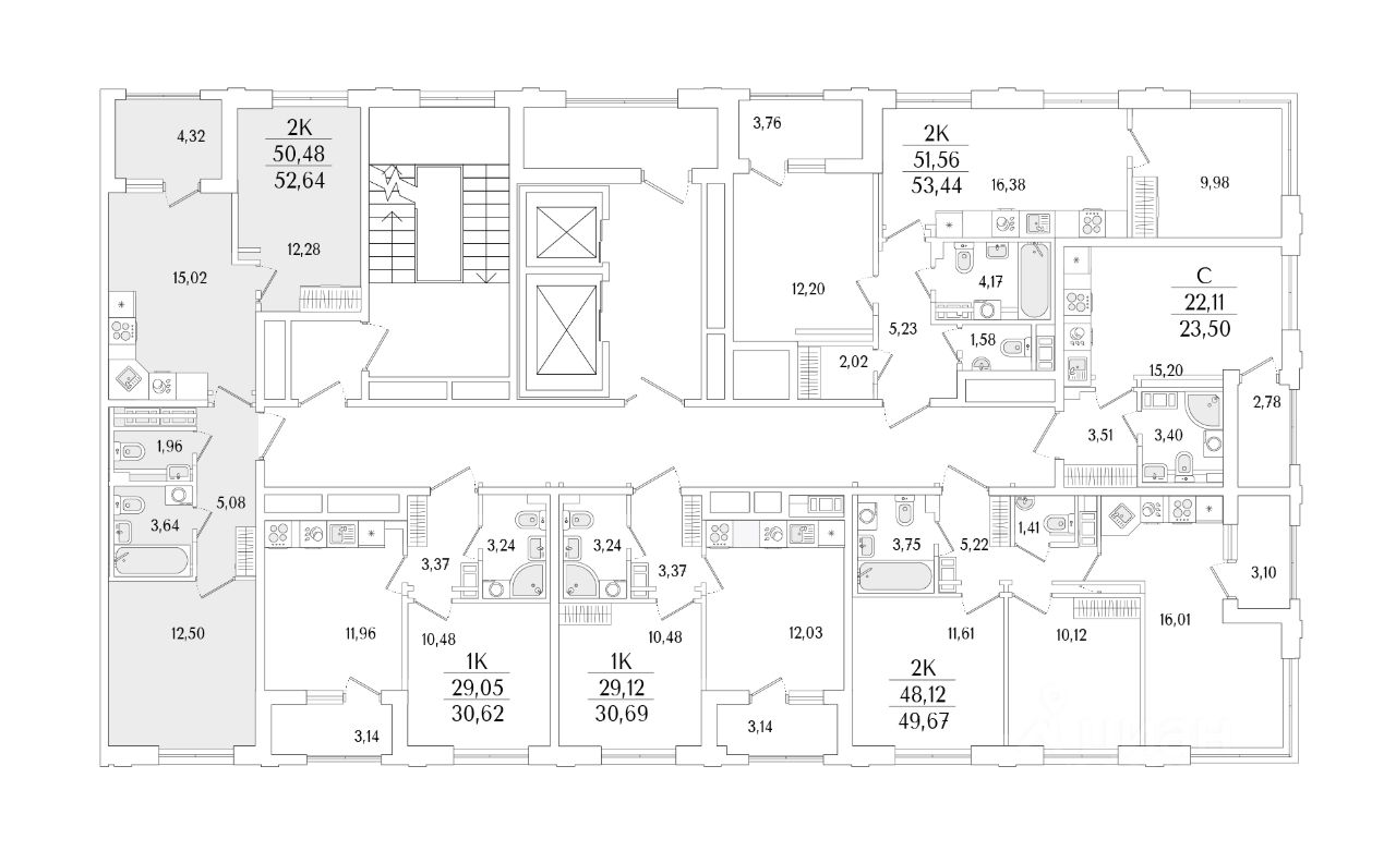 Кухни-гостиные с угловым остеклением. Просторные кухни-гостиные площадью более 20 м². Студии с двумя окнами. Ванные с окном Clerestory. Кухни-гостиные с выделенной нишей под кухню. Спальни с выделенной многофункциональной зоной, в которой можно организовать свой идеальный уголок. Квартиры с просторными лоджиями правильной квадратной формы.