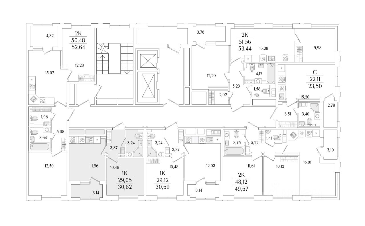 Кухни-гостиные с угловым остеклением. Просторные кухни-гостиные площадью более 20 м². Студии с двумя окнами. Ванные с окном Clerestory. Кухни-гостиные с выделенной нишей под кухню. Спальни с выделенной многофункциональной зоной, в которой можно организовать свой идеальный уголок. Квартиры с просторными лоджиями правильной квадратной формы.