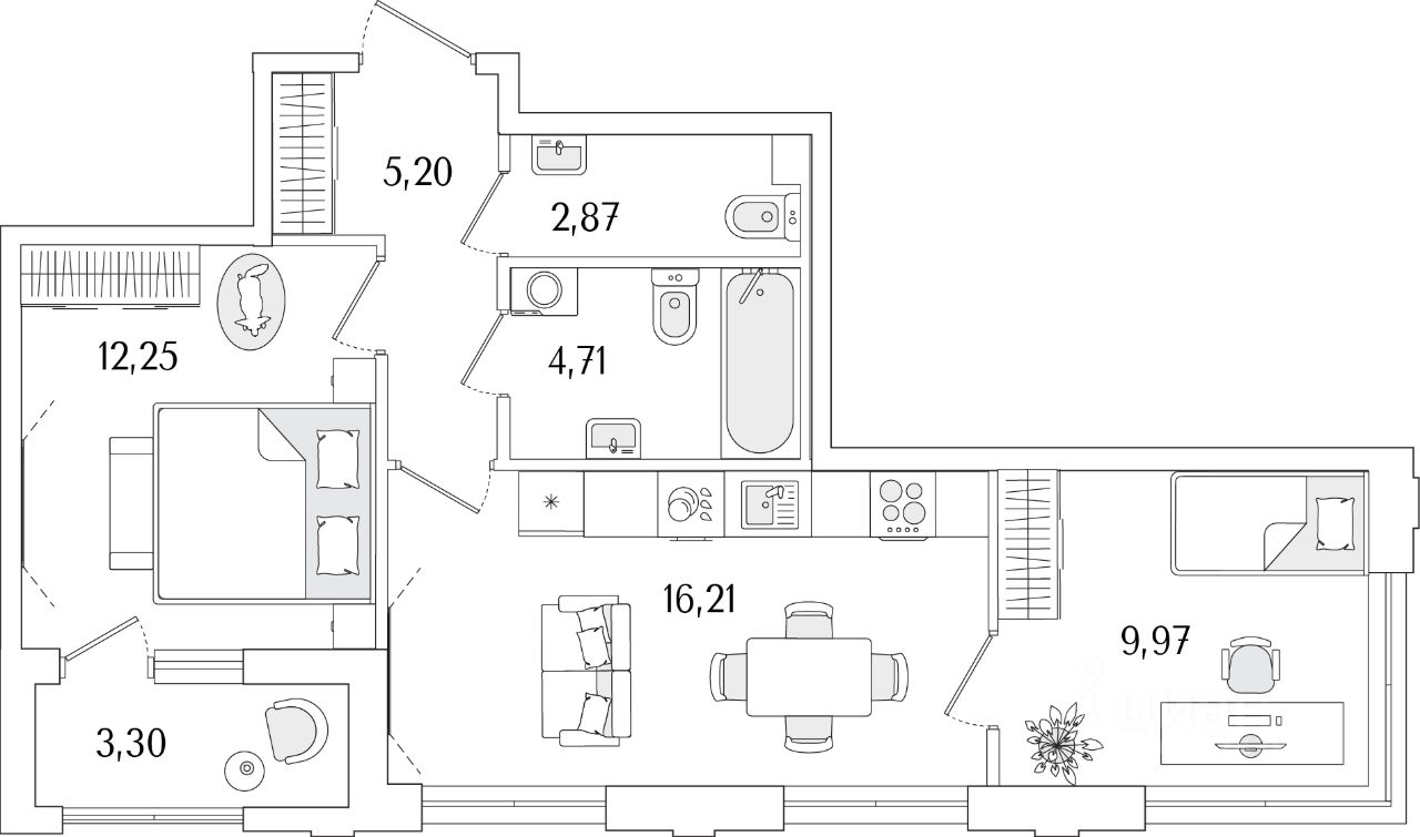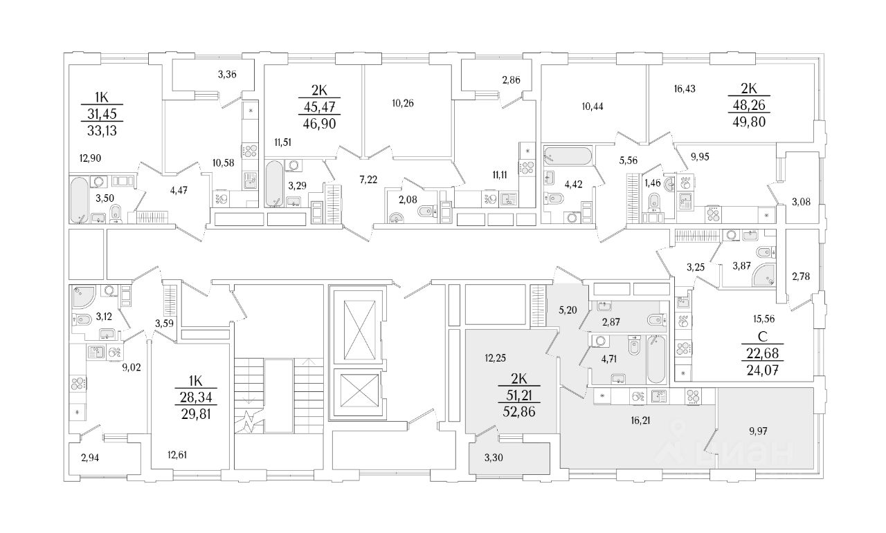 Кухни-гостиные с угловым остеклением. Просторные кухни-гостиные площадью более 20 м². Студии с двумя окнами. Ванные с окном Clerestory. Кухни-гостиные с выделенной нишей под кухню. Спальни с выделенной многофункциональной зоной, в которой можно организовать свой идеальный уголок. Квартиры с просторными лоджиями правильной квадратной формы.