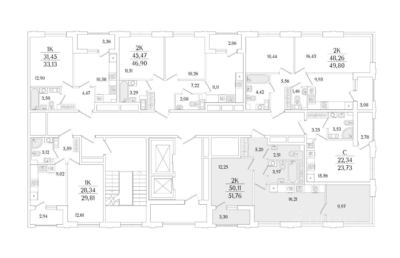 Кухни-гостиные с угловым остеклением. Просторные кухни-гостиные площадью более 20 м². Студии с двумя окнами. Ванные с окном Clerestory. Кухни-гостиные с выделенной нишей под кухню. Спальни с выделенной многофункциональной зоной, в которой можно организовать свой идеальный уголок. Квартиры с просторными лоджиями правильной квадратной формы.