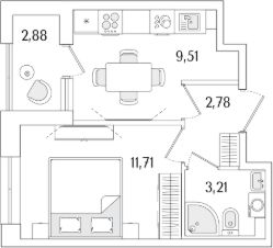 Квартира находится в 13 этажном доме, в Гранат - Корпус К1 на 1 этаже. Общая площадь квартиры 28,65 кв.м.