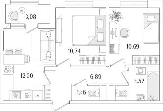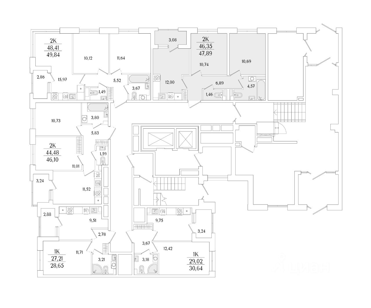Квартира находится в 13 этажном доме, в Гранат - Корпус К1 на 1 этаже. Общая площадь квартиры 47,89 кв.м.