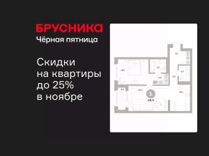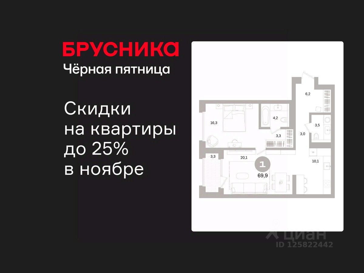 Однокомнатная квартира с предчистовой отделкой в ЖК "Северный ветер" на 13 этаже. Общая площадь: 69.86 кв.м., жилая: 16.3 кв.м., площадь просторной кухни-столовой: 30.2 кв.м. Все окна выходят на одну сторону. В квартире одна лоджия, один совмещенный и один раздельный санузел. Высота потолков 3.1 м.