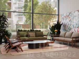 Мы разделили лобби на два типа — большие (одно на каждый дом) и компактные (на каждую секцию). Для создания интерьеров лобби и холлов мы используем материалы природных оттенков, текстуры дерева и камня, матовые поверхности. В большие открытые пространства запускаем много естественного света, а витражное остекление органично связывает помещения с ландшафтом.