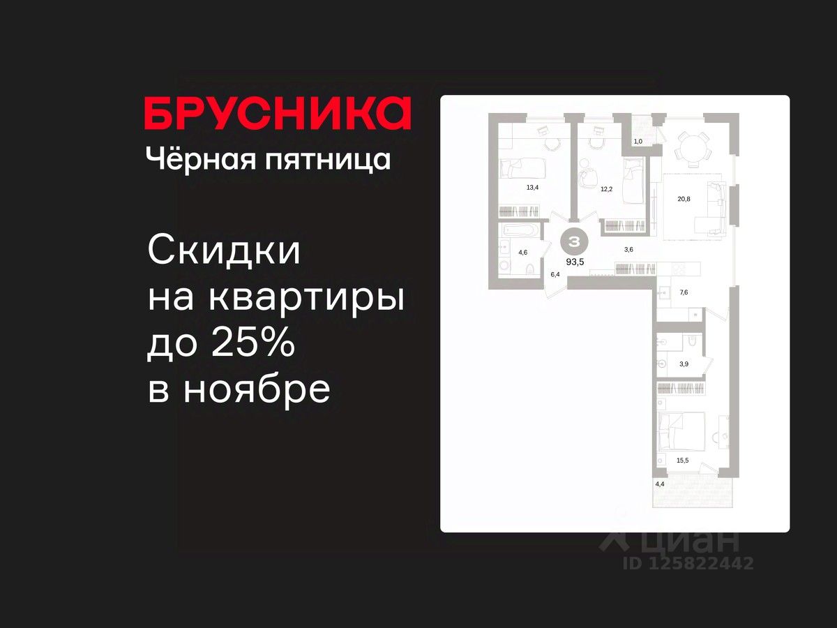 Просторная трехкомнатная квартира с предчистовой отделкой в ЖК "Северный ветер" на 3 этаже. Общая площадь: 93.53 кв.м., жилая: 41.1 кв.м., площадь просторной кухни-столовой: 20.8 кв.м. Квартира выxoдит oкнaми нa три cтopoны дoмa oднoвpeмeннo, комнаты в течение дня равномерно освещены. В квартире одна лоджия, два совмещенных санузла. Высота потолков 3.1 м.