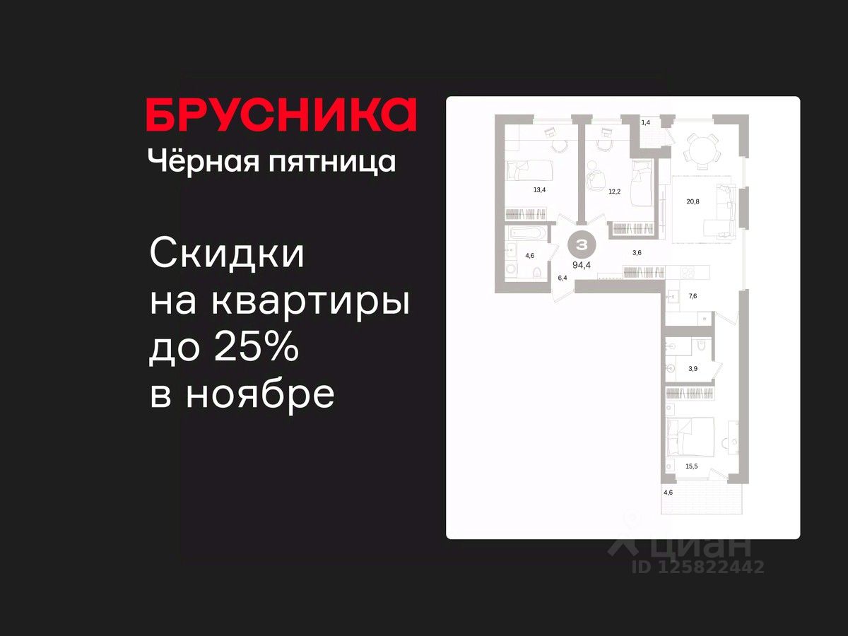 3-комн. квартира с предчистовой отделкой в ЖК "Северный ветер" на 4 этаже. Общая площадь: 93.53 кв.м., жилая: 41.1 кв.м., площадь просторной кухни-столовой: 20.8 кв.м. Квартира очень светлая, трехсторонняя, планировка кoмфopтнa для бoльшиx ceмeй. В квартире одна лоджия, два совмещенных санузла. Высота потолков 3.1 м.