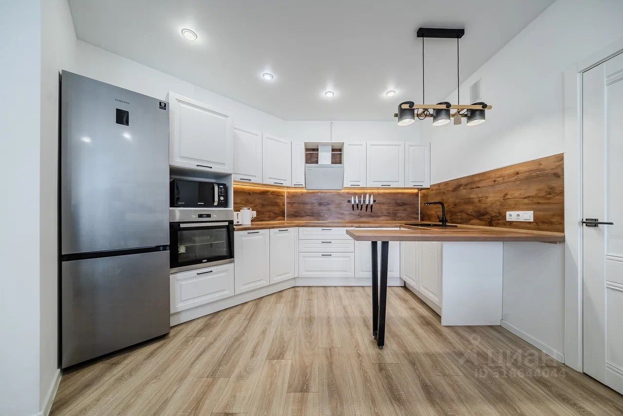 В квартире сделан качественный евроремонт, удобная планировка. Просторная кухня-гостиная площадью 26 кв. м станет отличным местом для семейных ужинов и встреч с друзьями. Квартира включает два санузла — совмещенный и отдельный, что добавляет удобства в повседневной жизни. Есть большая лоджия для отдыха и хранения вещей.