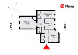 ВАЖНО: 2 спальни и кухня выходят окнами во двор, а из гостиной можно любоваться на Неву и замечательную уютную Скорбященскую церковь.