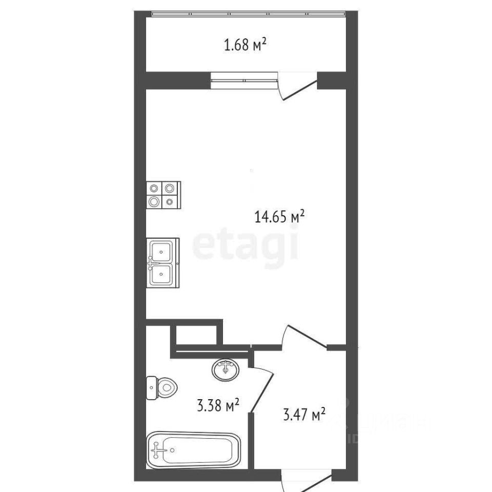Студия оснащена всем необходимым для жизни — современной мебелью и бытовой техникой, включая встроенную кухню. Имеется утепленный балкон, где можно наслаждаться утренним кофе или вечерними закатами.