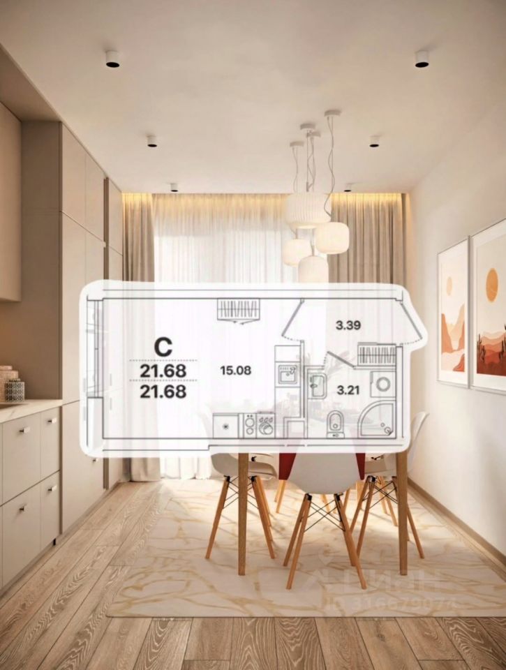 Продаётся квартира-студия 21,68 м² с ремонтом в современном жилом комплексе "Академик".