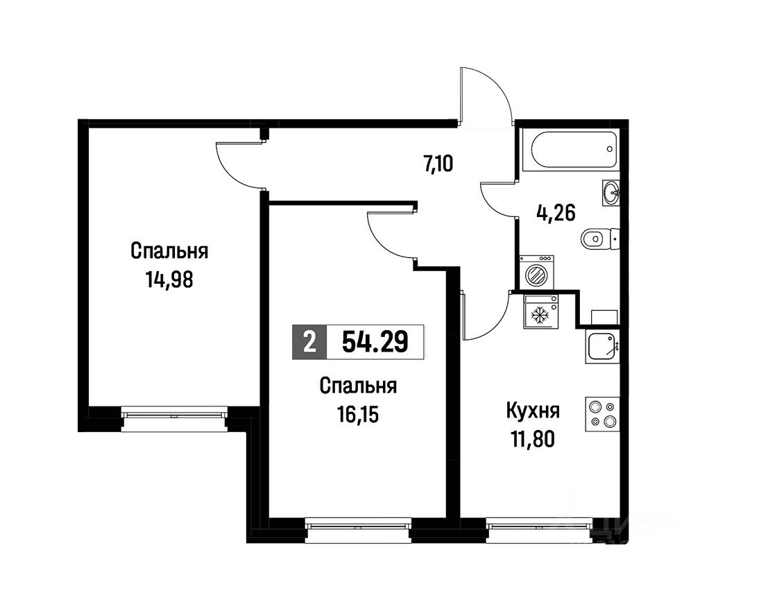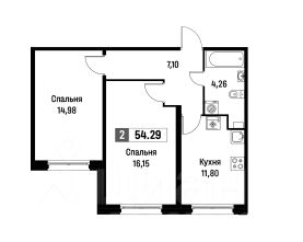 В продаже двухкомнатная квартира 54,29 м² в ЖK Фoтoгpаф в Мурино!