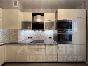 Современная просторная глянцевая кухня из УФ-пластика (11,7 кв.м) сделана в стиле модерн с встроенной немецкой техникой (варочная панель, духовой шкаф, микроволновка, посудомоечная машина, холодильник, вытяжка с системой фильтрации) и вместительными местами хранения . Установлены дополнительно трехступенчатые фильтры питьевой воды. Кухня имеет выход на отдельный утепленный балкон (3.3кв.м), который можно оборудовать в дальнейшем под кабинет (дополнительное освещение и розетки предусмотрены).