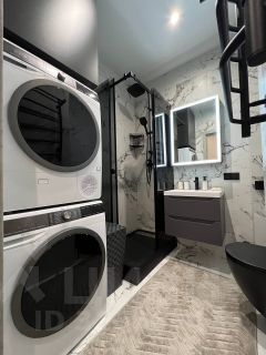 Два раздельных санузла, один из которых находится в самом начале квартиры. В конце коридора расположен совмещенный санузел, который оборудован современными большими стиральной и сушильной машинами, дополнительно установлен проточный водонагреватель.