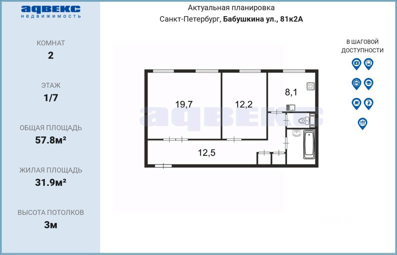 57,8 м²