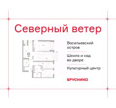 3-комн. квартира с предчистовой отделкой в ЖК "Северный ветер" на 5 этаже. Общая площадь: 110.05 кв.м., жилая: 40.2 кв.м., площадь просторной кухни-столовой: 30 кв.м. Квартира угловая, идеально подойдет любителям тишины и панорамных видов. В квартире две лоджии, два совмещенных санузла. Высота потолков 3.1 м.