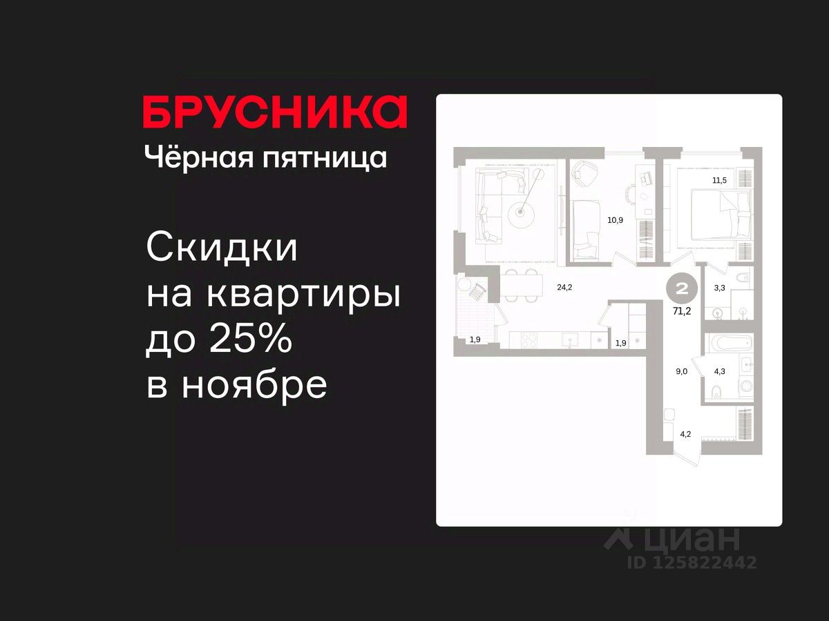 Продается двухкомнатная квартира с предчистовой отделкой в ЖК "Северный ветер" на 5 этаже. Общая площадь: 71.12 кв.м., жилая: 22.4 кв.м., площадь просторной кухни-столовой: 24.2 кв.м. Угловая квартира, очень светлая, естественная вентиляция при открытии окон. В квартире одна лоджия, два совмещенных санузла. Высота потолков 3.1 м.