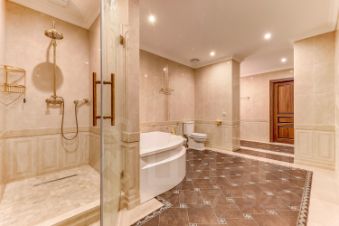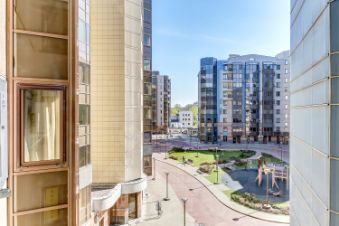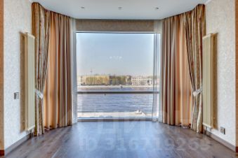 Квартира трехсторонняя, гостиная 70 кв.м. с большим панорамным эркером и кухней-столовой 40кв.м. с видом на набережную Невы, 3 СУ, холл;