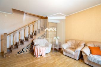 На первом уровне квартиры находится кухня и просторная гостевая зона, гостевой санузел.